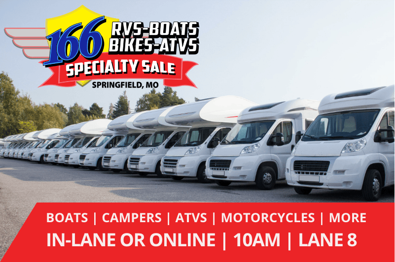 2nd Thursday of Each Month at 10 AM in Lane 8 – Boats, Campers, ATVs, Motorcycles, & More.
